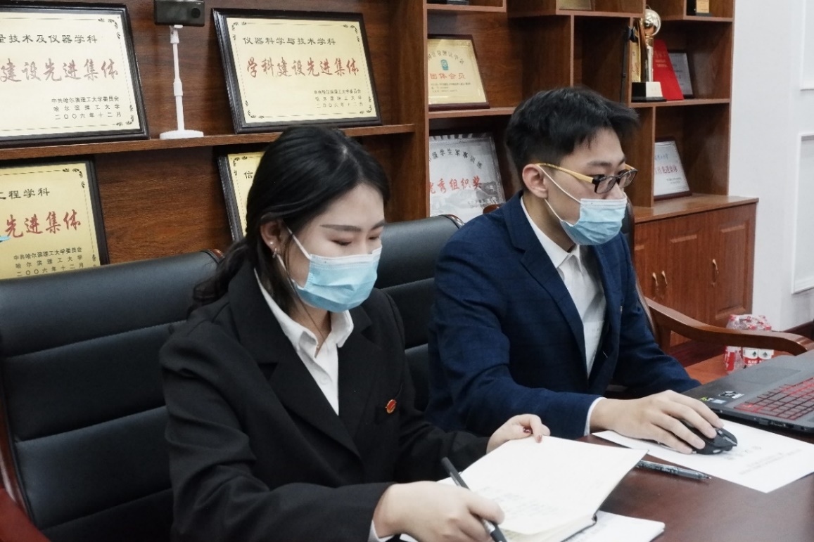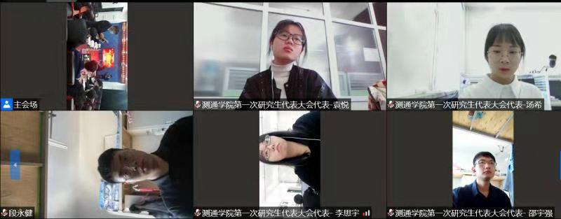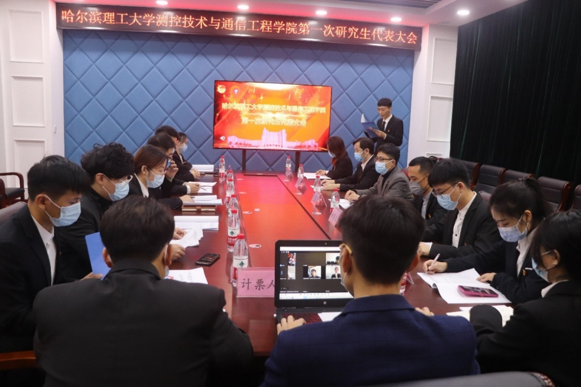 在中国共产党第十九届中央委员会第六次全体会议召开之际,为学习贯彻习近平总书记“七一”重要讲话精神,铭记百年奋斗历史;贯彻落实习近平总书记致全国青联十三届全委会、全国学联二十七大的贺信和党中央致词精神、全国学联二十七大精神、2020年全国研究生教育大会会议精神,推进学院研究生的权益服务工作,保障学院广大研究生的根本利益,展现测通学院学子的良好精神风貌,根据《中华全国学生联合会章程》、《学联学生会组织改革方案》、《普通高等学校学生(研究生)代表大会工作规定》,11月12日上午9时,在庄严的国歌声中,哈尔滨理工大学测控技术与通信工程学院第一次研究生代表大会在新主楼1025会议室以线上线下结合方式隆重召开。院党委副书记张宏磊,院团委书记姚春波,院学工办主任、研究生会指导老师杨胜宝出席了会议。会议由贾澳主持。47名研代会代表肩负着广大青年学生的重托,担负着青春梦、强校梦、中国梦的青春使命与担当,满怀着憧憬、喜悦与激动出席大会,青春相聚,共畅未来。