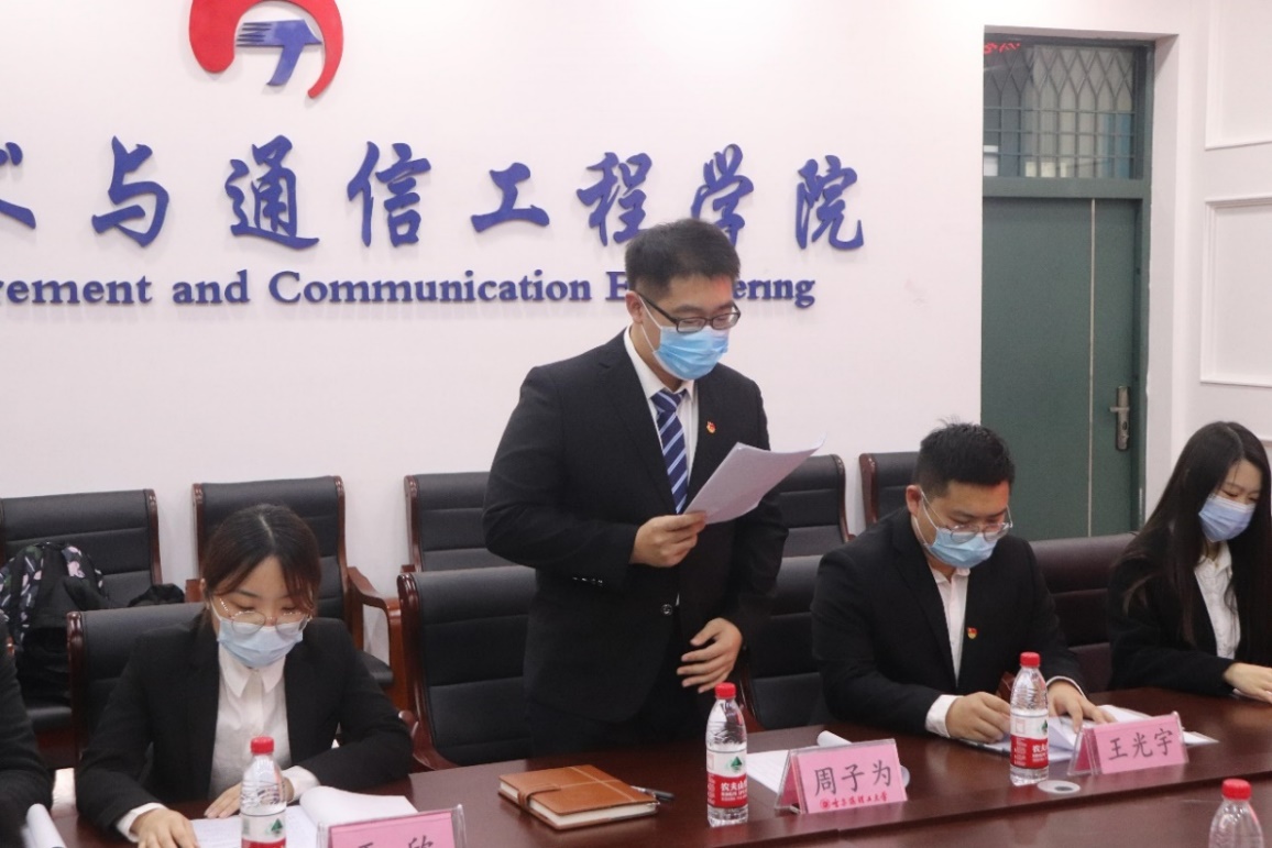 大会听取审议了周子为代表第一届测控技术与通信工程学院研究生会作的题为《高举时代旗帜 担当强国使命 团结引领理工青年开拓创新、锐意进取 为学院长足发展建设贡献青春力量》的工作报告,他从强化思想、加强组织建设、提高服务水平三个方面出发,希望研究生会可以提高认识,不忘初心,服务于广大学院研究生群体,同时展望规划了未来研究生会一年的工作重点和工作重心。