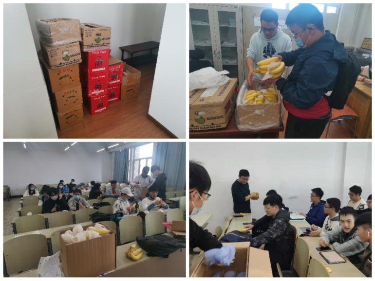 辅导员刘鸿图、孙启智为毕业生送“100”寓意水果