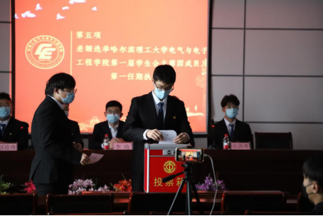 下午15时,全体代表按照学生会、研究生会主席团成员选举办法,经过民主投票,选举产生了哈尔滨理工大学电气与电子工程学院第一届学生会主席团成员(李文豪、赵迹豫、张淇尊)及第一任期执行执行主席(李文豪)和第一届研究生会主席团成员(刘泓铄、吴玉博、邓捷)及第一任期执行执行主席(刘泓铄)。