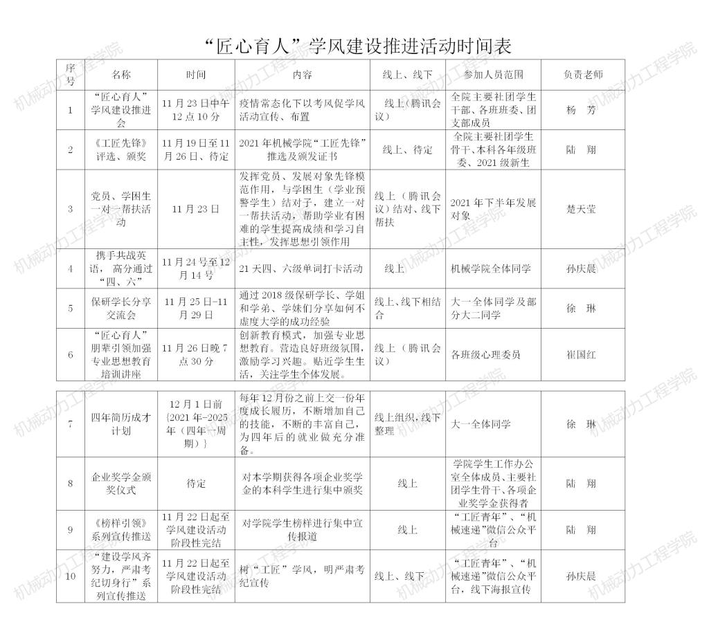 此次“匠心育人”学风建设活动旨在推进会的召开引导学院学生牢固树立以学为主、目标明晰,态度端正,惜时勤勉的良好素质,强化自觉遵守考试纪律和学术道德的底线意识,依据《机械动力工程学院学风建设实施方案》进一步推进制度建设,建立考风考纪教育长效机制,为持续营造良好学风氛围明确了努力方向。