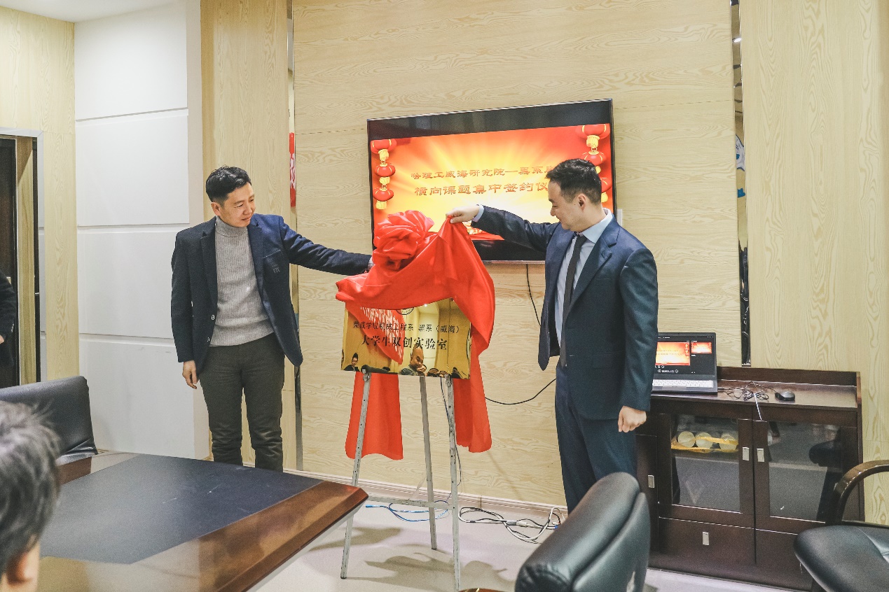 双方为“荣成学院机械工程系-黑系(威海)大学生双创实验室”揭牌