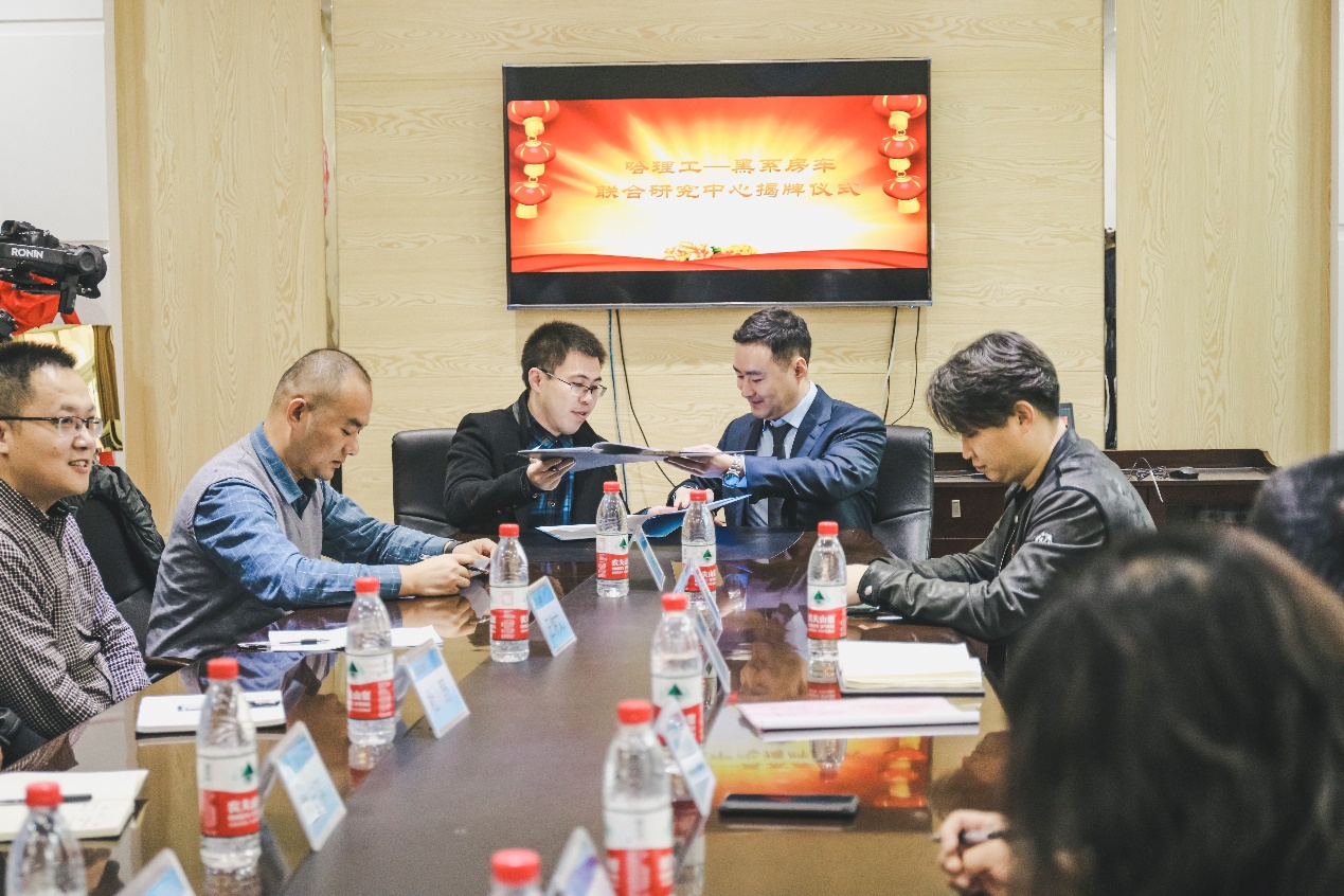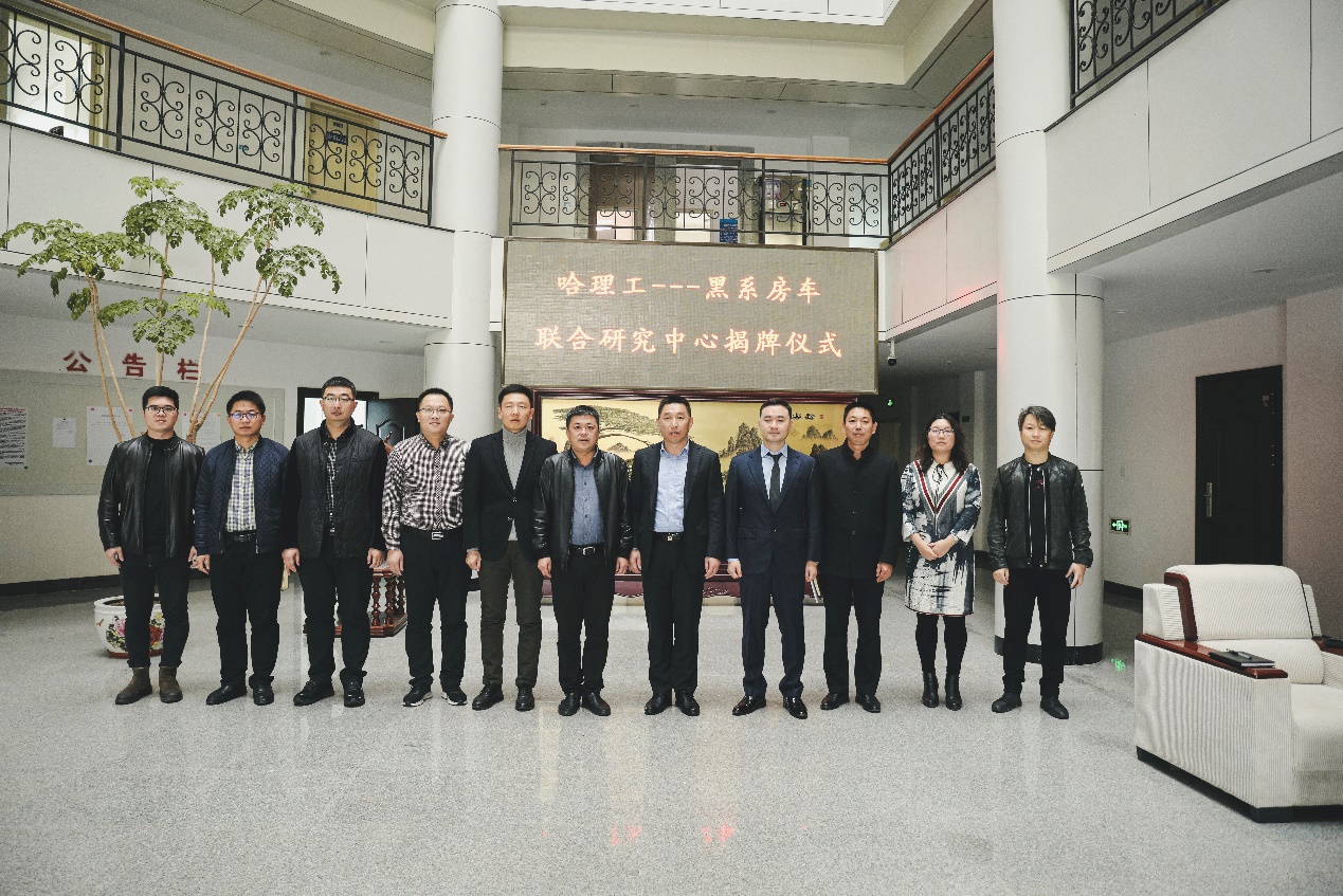 双方为“哈理工-黑系(威海)房车创新设计与新材料联合研究中心”揭牌