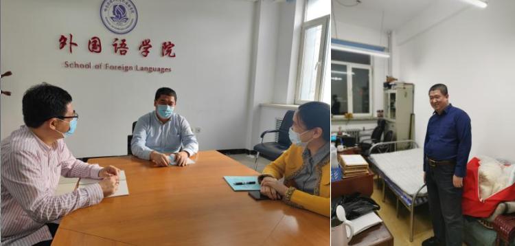 日语系系主任徐英东老师回到学校,他直奔办公室,开始收集疫情防控相关信息、整理数据、查看文件,随时待命状态,同时紧急召开线上班会了解学生情况,传达落实学校相关疫情防控政策,安抚在校学生情绪。