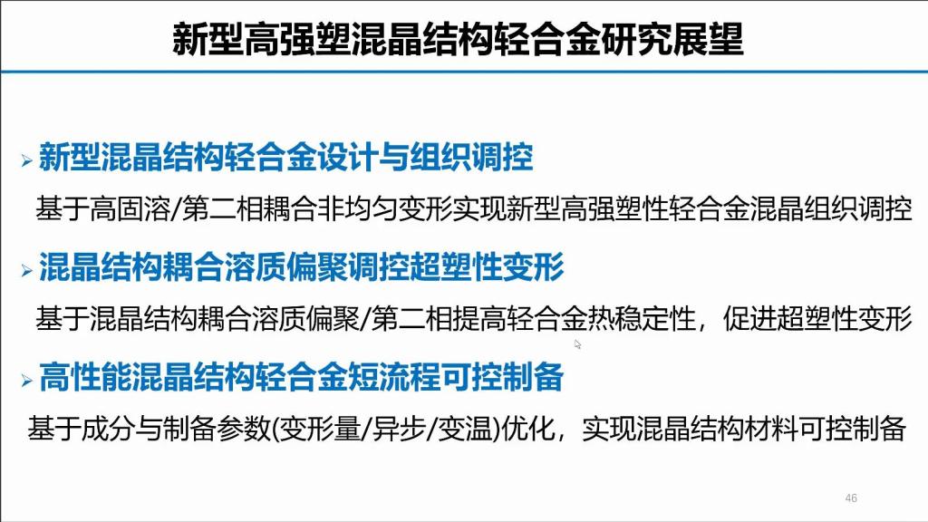 查敏教授首先介绍了高性能轻合金材料应用背景和战略需求,提出了混晶提升材料强塑性的思路和基本原理,然后结合自身的科研经历及取得的成果展开详细介绍。针对不同轻合金材料,查敏教授团队经过长期的研究,采用亚快速凝固技术和大压下量控轧技术成功制备了高强塑和高热稳定性的Al-7Mg、AZ91等新型高强塑混晶结构轻合金材料,并针对材料制备技术、微观组织演变及调控、室温和高温力学性能、强塑性机制、超塑性机制等进行了深入的研究。最后查敏教授对混晶结构轻合金材料领域的科研热点及应用前景进行了展望。
