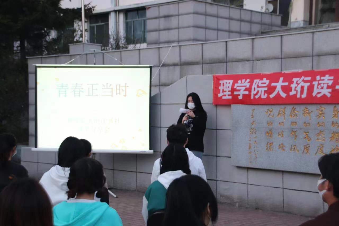 自我院开展“无运动•不青春”哈尔滨理工大学体育文化月系列活动以来,学院领导积极部署,学工人员精心策划,学生干部周密组织,开展了两场具有学院特色,广大学生喜闻乐见的文体活动。活动覆盖面广,趣味性强,内容丰富,寓教于乐。时值活动尾声,我院本着“运动使人充满生机活力,思考使人充满智慧理性”的教育引导理念,于5月18日下午在理学院大珩先生铜像前,举办由理学院大珩读书社发起的以“青春正当时”为主题的体育活动月总结交流活动,激发学生对“寄望青春,奋斗青春”的思考。