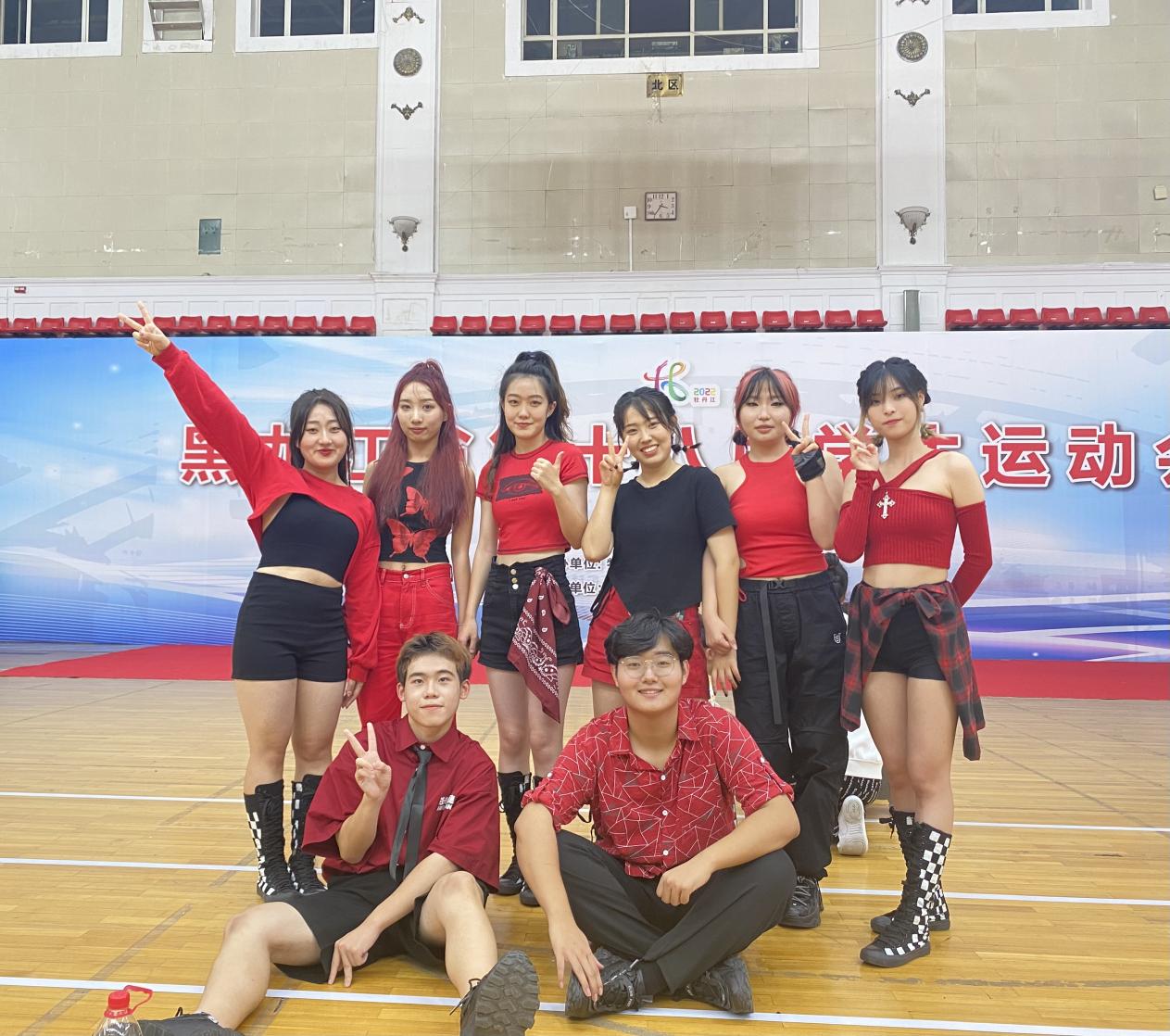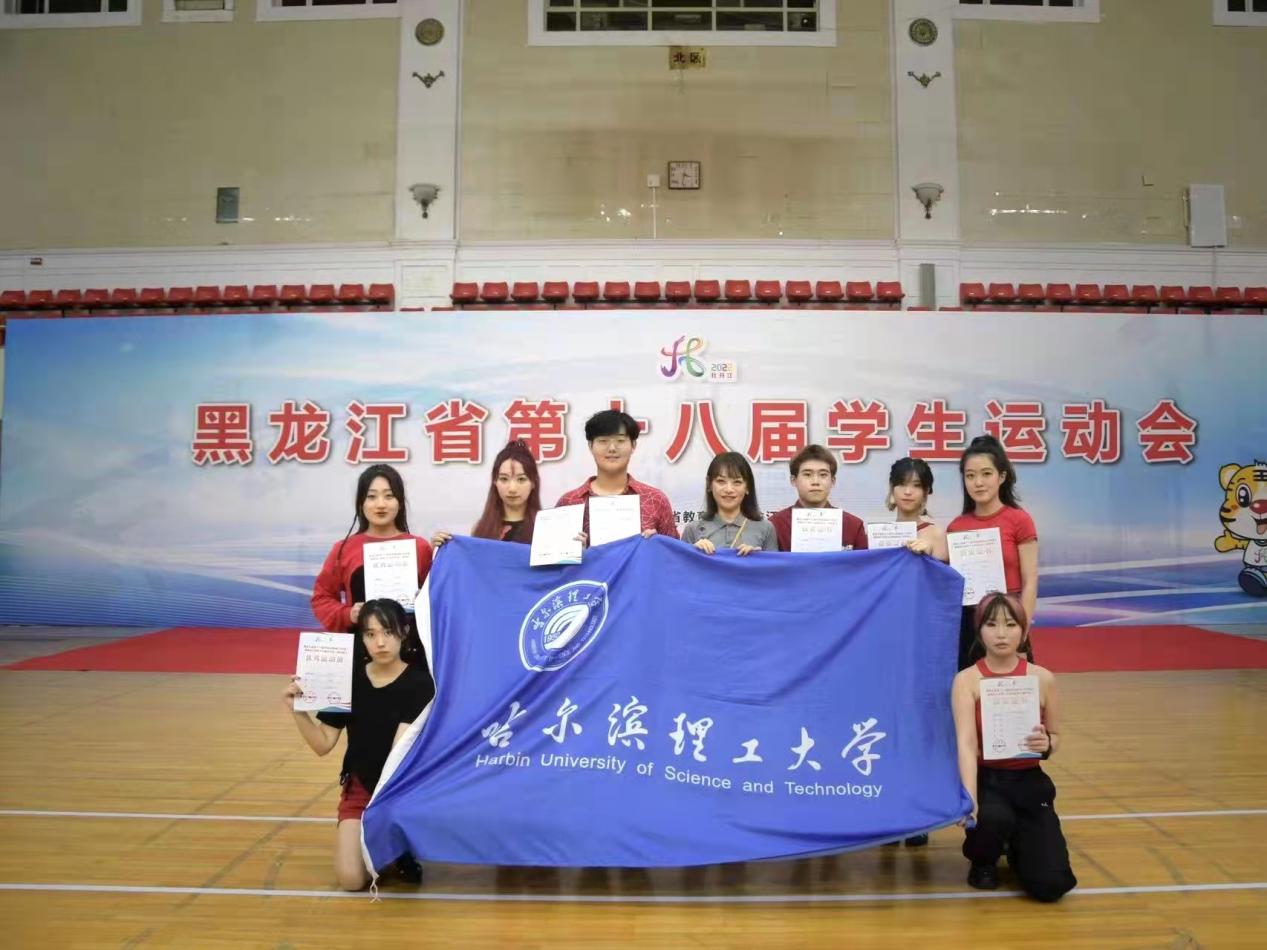 2022年8月13-17日由黑龙江省教育厅、黑龙江省体育局主办的黑龙江省第十八届学生运动会健美操比赛在牡丹江师范学院举行。来自全省18个地市和学校的200余名运动员参加了本次比赛。哈尔滨理工大学健美操队8名运动员在领队郑宏伟,教练苏莉的带领下参加了大学甲组啦啦操项目自由舞蹈组比赛。我校运动员在比赛中发挥出色,最终凭借新颖的套路、娴熟的技术动作以及默契的配合,最终夺得了第二名的优异战绩。