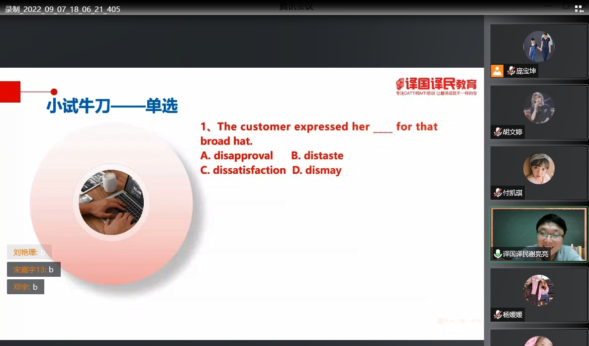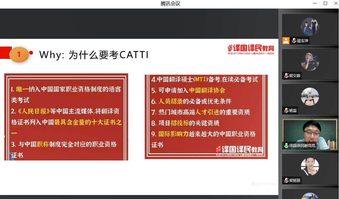 为助力学生高效备战CATTI翻译资格考试,不断提升人才培养质量,9月7日18时,外国语学院翻译教学中心、英语系联合邀请学院产业导师、译国译民集团创始合伙人谢亮亮做备考讲座。副院长杨蕊、英语系主任高英祺出席讲座,英语专业全体本科生、研究生参加学习。翻译教学中心副主任、英语系副主任庞宝坤主持讲座。