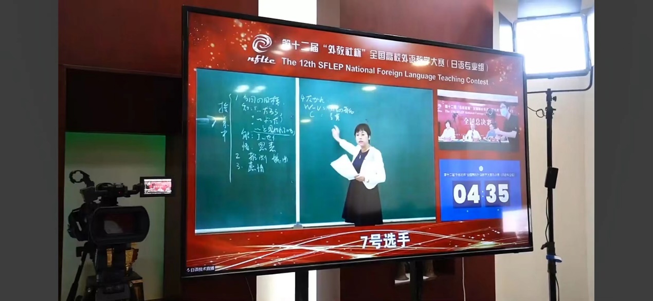本届大赛首次设立日语专业组比赛,来自全国的近百名选手入围复赛,成绩排名前10位的选手晋级全国总决赛。总决赛采用“选手说课+评委提问”2个环节,现场公布赛题,选手拿到授课文本后,需在30分钟内完成教学设计,向评委展示课程设计理念、课堂教学设计、教学效果评价等环节。在比赛中,刘丽丽老师与来自北京语言大学、武汉大学、华东理工大学、上海理工大学、海南大学等高校的选手同台竞技。她从课前准备、课中实施和课后反思等环节进行设计,将“以学生为中心,以产出为导向”理念贯穿整个课堂设计,以丰富合理的任务带领学生实现教学目标,激发批判式思维;课堂设计思路清晰,语言表述精准幽默;问答环节流畅自如,教态自然,把语言知识与教学手段完美融合。刘丽丽老师凭借深厚的学识和扎实的教学功底,赢得了评委的高度认可,充分展现了我校教师昂扬向上、锐意进取的良好精神风貌。
