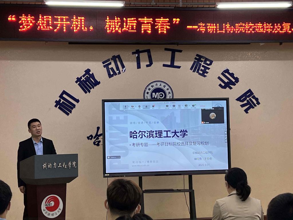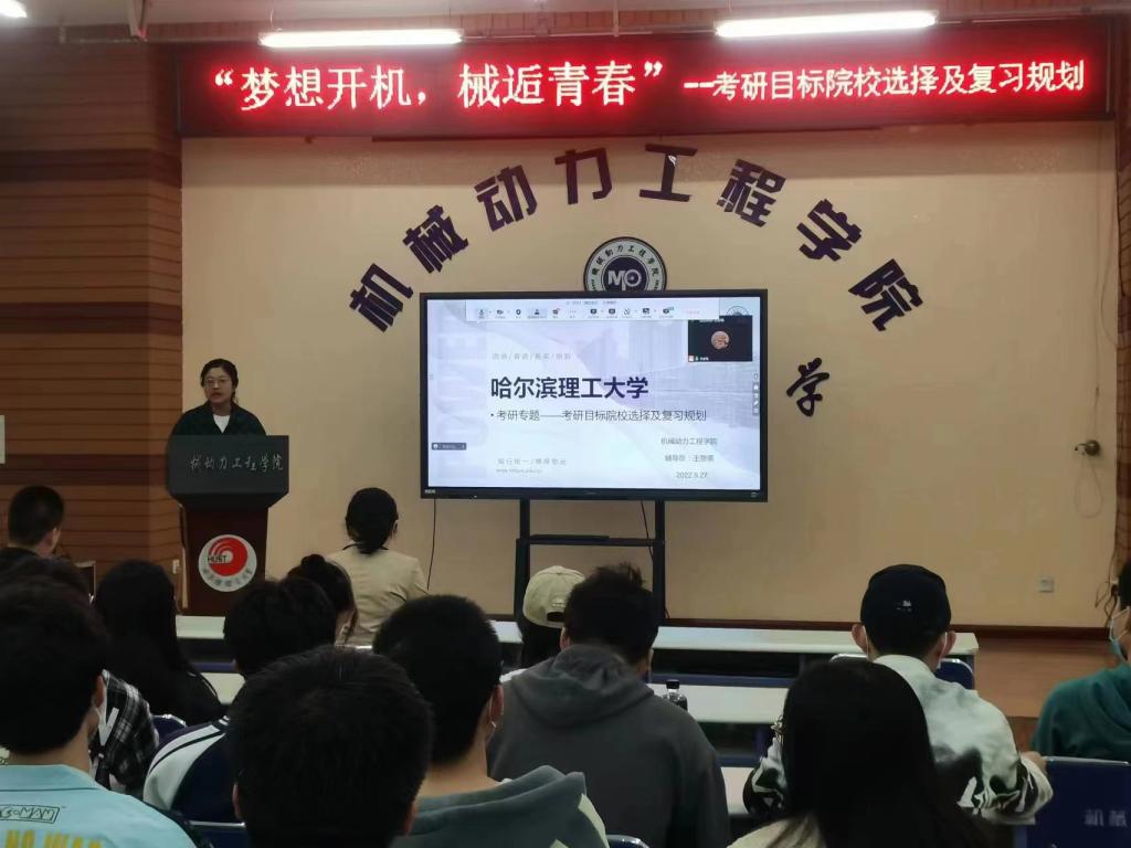 为帮助机械学院2023届学生更好地明确考研意向,更全面了解考研规则,掌握考研复习方式和技巧。我院于9月27日在新主楼C305教室举办了以“梦想开机,‘械’逅青春——考研目标院校选择及复习规划”为主题的讲座。学院党委副书记杨芳,就业指导中心教师徐琳、辅导员王赞儒和有考研意向的各年级同学参加,本次讲座通过线上线下相结合的方式开展。讲座由徐琳主持。