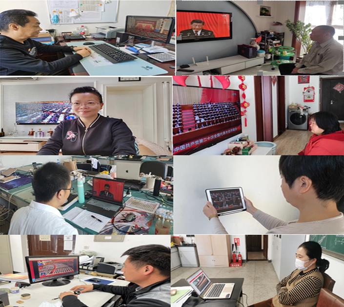 学院领导班子成员、各党支部书记、教师党员代表和学生党员代表在遵循疫情防疫要求的情况下在化工楼430线下集体收看了大会直播盛况,其他全体师生党员通过线上观看了直播盛况。