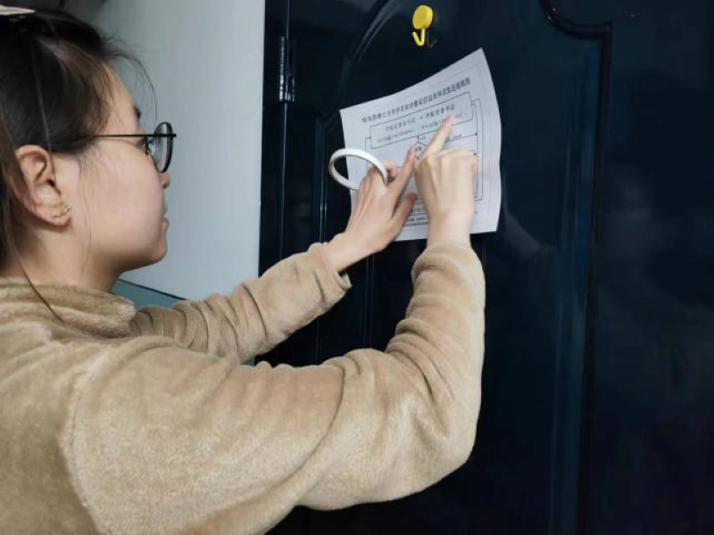 会后,各辅导员及学院公寓自管中心组织学生张贴《哈尔滨理工大学学生安全稳定信息闭环式报送流程图》在学生寝室门上,实现学生宿舍流程图张贴全覆盖。