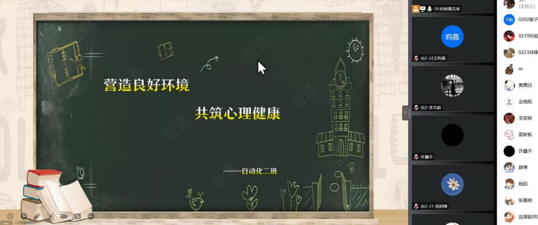 自动化学院开展了形式多样、内容丰富的主题班会活动。在班会中,心理委员普及了精神卫生保健策略,倡导同学们在积极的沟通中关爱他人、悦纳自我,让学生关注心理健康的理念入耳、入脑、入心。本次班会增强了学生积极面对疫情的心理意识,提高了学生面对常见心理问题的自我调节能力,提升了学院心理育人工作的普及性与渗透性。