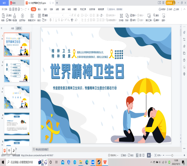 为积极响应“2022年世界精神卫生日”的号召,深入推进心理健康教育工作育人实效,宣传、普及精神卫生防护知识,提高大学生心理健康素质,在符合疫情防控要求下,各学院组织召开了以“营造良好环境,共助心理健康”为主题的心理班会。主题班会由各班心理委员主持。