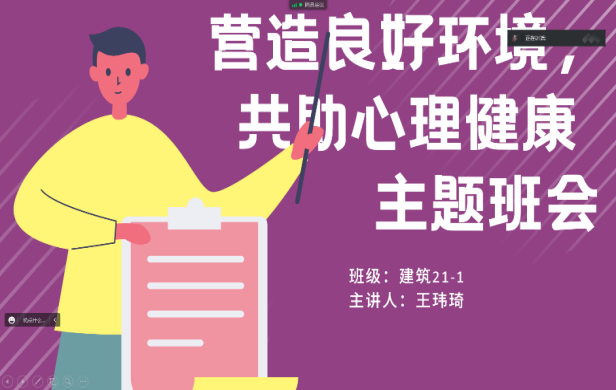建筑工程学院采取线上、线下相结合的形式开展了主题班会活动。线下开展了板报创作、班会宣讲、心理游戏等活动,线上观看了心理健康教育专家专访视频,充分动员了全院学生参与其中,共助心理健康建设,不仅丰富了学生的学习生活,还普及了大学生常见心理疾病的预防策略,营造了维护心理健康、关注精神卫生的良好氛围。