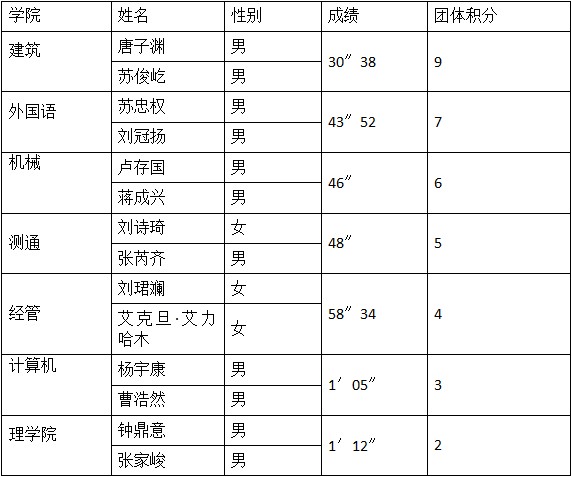 裁判长郑茂成老师在致词中说:“同学们,当你穿着轮滑鞋站在起跑线的那一刻,告诉自己,无论成功与否,微笑着滑过全程,只要年轻的心还在蓬勃的跳动,就要大声的告诉自己——将信心进行到底!只要你拼搏了,奋斗了,你就不必失望,你的生命已散发出了光芒!成功属于每一个勇敢者!”整场比赛的开场由“旋转年轮”轮滑社社长段野等成员的平花、轮舞、花式刹车表演形式拉开帷幕。比赛由自由式项目(Cross速桩、Snake速桩、花式绕桩)、轮滑团体项目(钻山洞、捡桩摆桩、运桩接力)组成。来自各学院的轮滑高手们秉持着“友谊第一,比赛第二”的原则,在赛场上,发扬拼搏精神,充分展现了高超的轮滑技术。
