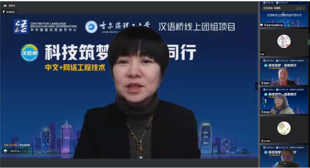 1月8日,由教育部中外语言交流合作中心主办、哈尔滨理工大学承办的2022-2023年度“汉语桥”线上团组项目正式开营。接下来的两周,来自越南、泰国、孟加拉、柬埔寨、巴基斯坦、蒙古等12个国家的189名学员相聚“云端”,与哈尔滨理工大学的老师们一起,开启一场科技汉语学习的旅程。