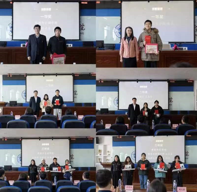 孙启瑞、杨彩霞、刘树云、臧晓明、连弘垚五名老师荣获优秀指导教师奖,马克思主义学院、荣成学院和经济与管理学院荣获优秀组织奖。