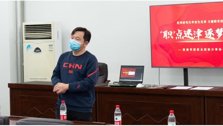 最后,测通学院研究生辅导员杨胜宝对本次会议进行了总结发言,首先他对毕业生的精彩分享表示衷心感谢,希望他们在今后的工作中继续学习新领域的知识,不断充实自己,完善自己,尽快融入到社会当中,以良好的精神状态迎接各种挑战。同时鼓励在校生在日常学习中要明确学习目标和职业规划,注重专业课程的学习和综合能力的提升。在求职就业方面,要明确自己的求学求职方向,不断完善自我,努力提升专业素养,提高就业竞争力。
