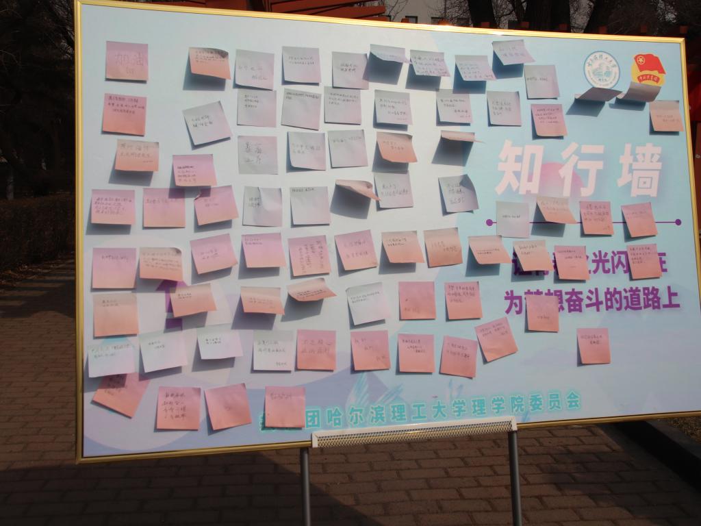 青春有梦,“让青春之光闪耀在为梦想奋斗的道路上”是习近平总书记对青年朋友们的殷切希望。在活动场地的左侧,放置了一块名为“知行墙”的展示板。“知行”二字取自“知行统一,博厚悠远”的校训,旨在鼓励学生要具有高尚的道德品质和远大的理想抱负,掌握过硬的科学文化知识,注重基础,崇尚实践,真正做到知与行的完美统一。现场的工作人员为每一位参会同学派发便利贴和签字笔,大家在便利贴上书写下自己的理想,并粘贴在“知行墙”上。“知行墙”上写满了同学们崇高远大的理想,对于未来生活的憧憬以及想对大珩老先生说的话语,同学们尽情抒发感受,在“知行墙”的见证下放飞青春理想。
