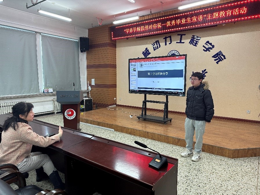 随后,优秀硕士毕业生申佳宁从研究生学习、实践、工作三方面给学弟学妹做了经验分享,重点介绍了职业选择和求职经历经验,在理论知识学习方面,她建议学弟学妹要重视专业理论知识学习的同时,要在研究生导师指导下,积极参与导师科研项目和专业学科竞赛,多读、多思、多写、多参与科研项目和文献学习。