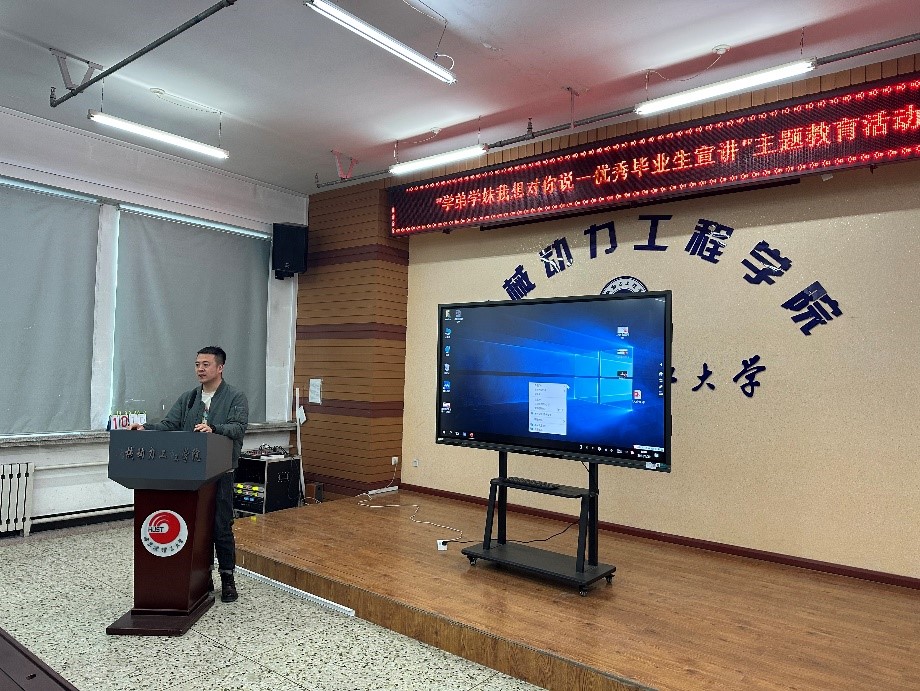 为加强我校学风建设,充分发挥学长学姐在专业学习、学术科研、实习实践、就业创业等方面的“传帮带”作用,发挥朋辈典型引领,推动2023届应届毕业生就业工作,机械动力工程学院于3月29日在教学主楼C305组织开展“学弟学妹我想对你说——优秀毕业生宣讲”主题教育。交流会由机械动力工程学院研究生辅导员王传宇主持,机械与动力工程学院党委副书记杨芳、机械与动力工程学院副院长戴野、2023届优秀毕业研究生及学院20余名本硕学生参加本次交流会。