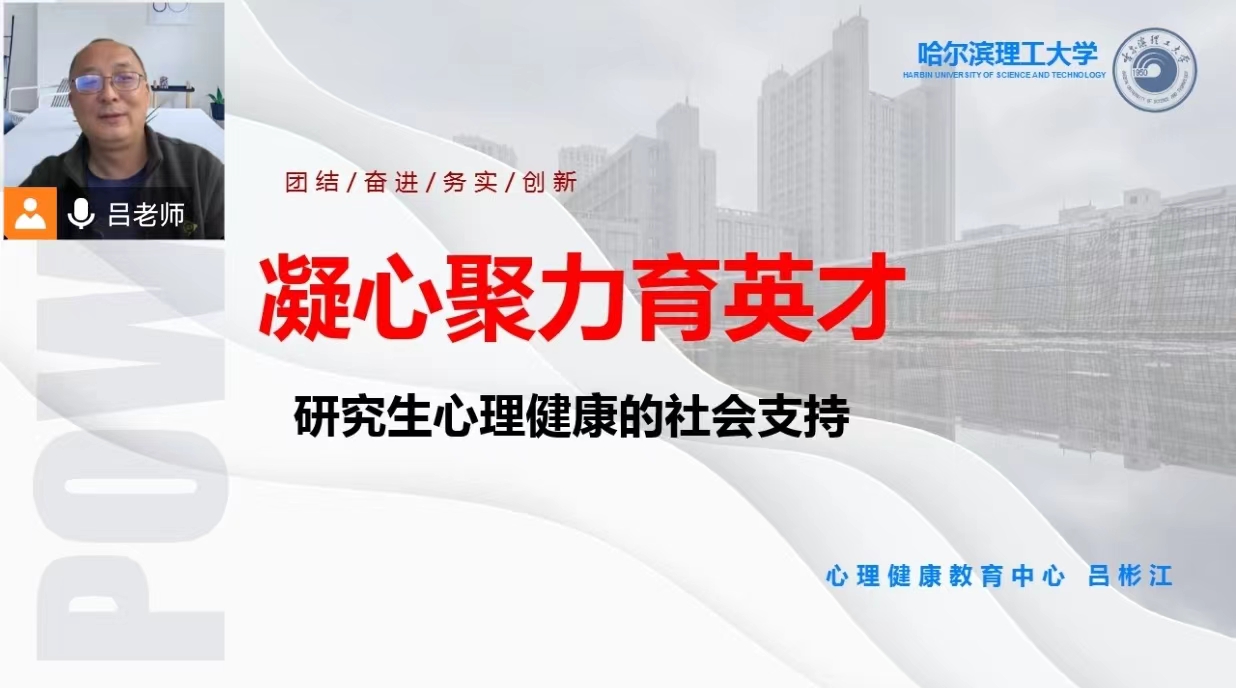 为积极响应以“以心相伴、青春护航”为主题的第十七届5·25心理健康教育活动,进一步加强我校心理健康教育工作,全面构建校内协同育人机制,强化学生心理健康教育的全员参与意识,我校于5月13日18时举办主题为“凝心聚力育英才——研究生心理健康的社会支持”的研究生导师、班主任心理工作培训会,培训通过腾讯会议平台线上进行。会议邀请哈尔滨理工大学心理咨询中心主任吕彬江教授为主讲嘉宾。各学院研究生导师、班主任共计120余人参会。