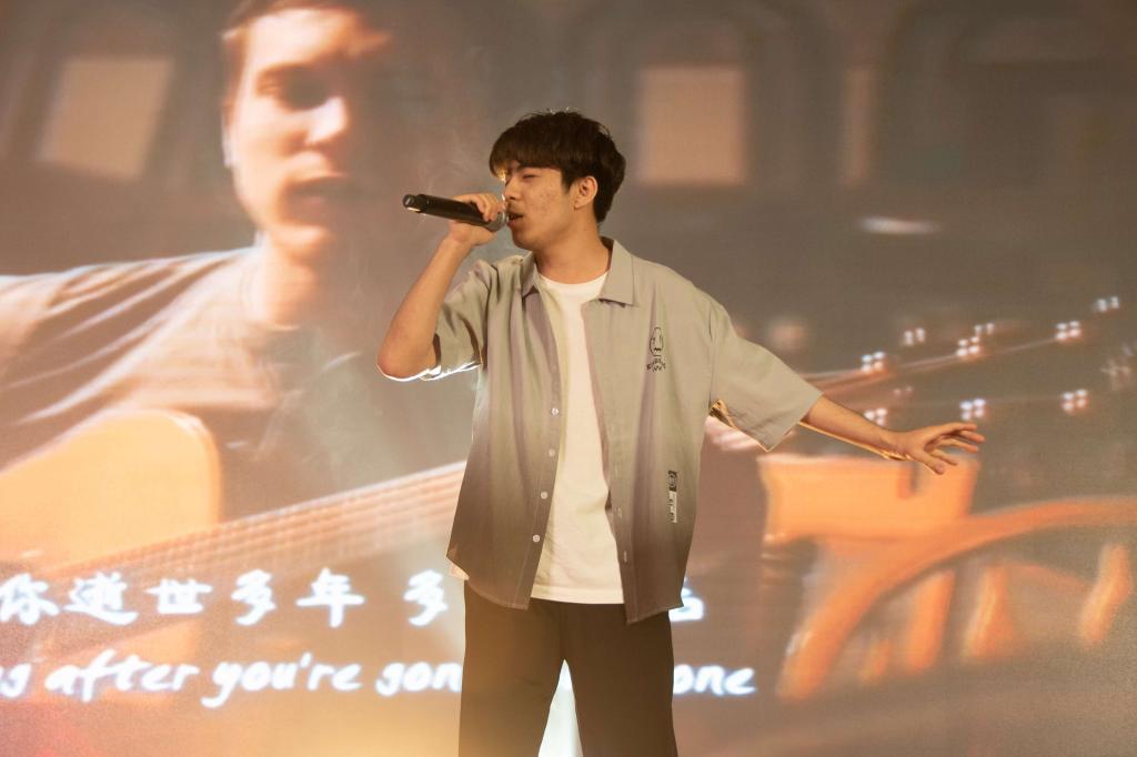 最后自动化学院代表队队员付经纬英文歌曲《gone gone gone》引起了在场观众的共鸣。
