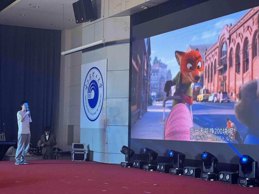 材料科学与化学工程学院代表队队员王昱及建筑工程学院代表队队员梁文龙等人分别带来日语配音《疯狂动物城》和英文配音《亮剑》,为大家带来听觉上的盛宴。