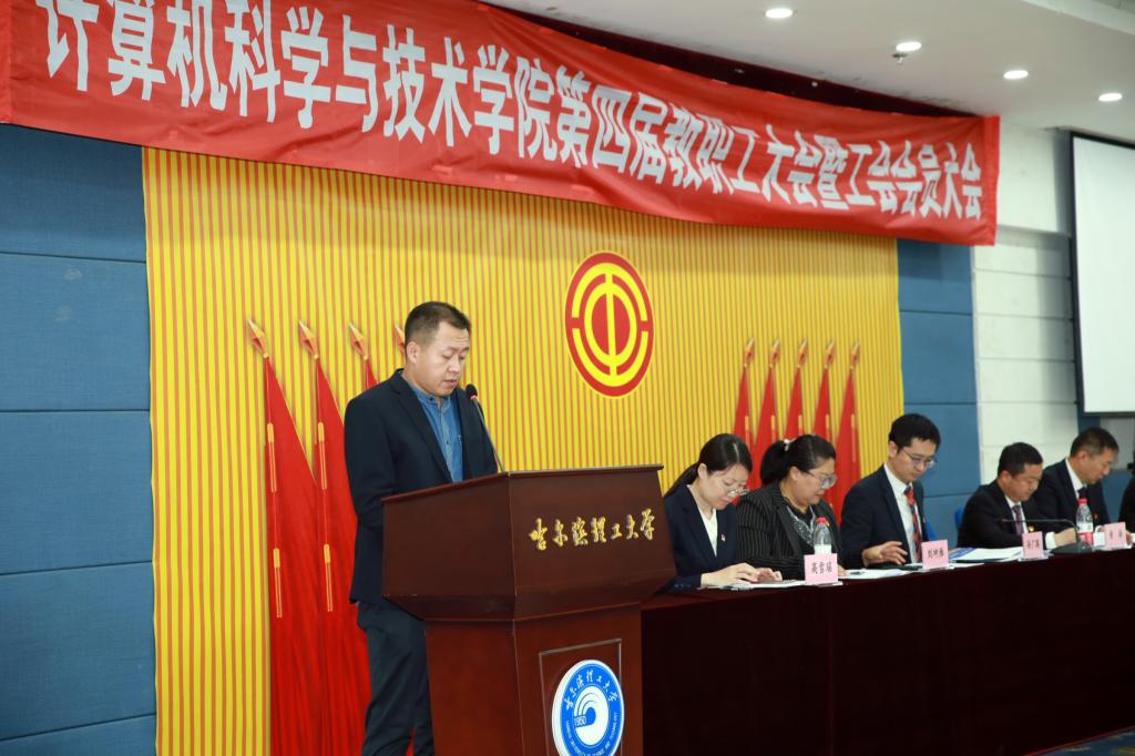 大会在庄严的国歌声中开幕。校党委常委、纪委书记孙树海代表学校向大会的召开表示热烈祝贺,向全院教职工和工会工作者致以亲切的问候和崇高的敬意,对计算机科学与技术学院近年来所取得的成绩予以肯定。孙树海指出,希望工会干部要不断提高自身政治站位,深刻领会党和国家对高等教育的要求,广泛了解我国高等教育发展的形势态势,充分认识学院在发展建设过程中存在的优势和不足,把党政所需、职工所盼、工会所能的事情办好办实。今后,学校将继续在政策等方面给予计算机科学与技术学院支持,尽我们所能搭建教职工成长进步的平台,携手共建更加充满活力和温馨的“教职工之家”,相信全院教职工一定会在即将产生的新一届工会委员会带领下,以开阔的视野、昂扬的斗志和扎实的作风不断推动计算机科学与技术学院各项工作取得新成绩,为建设理工大学更加美好的明天作出新的贡献。