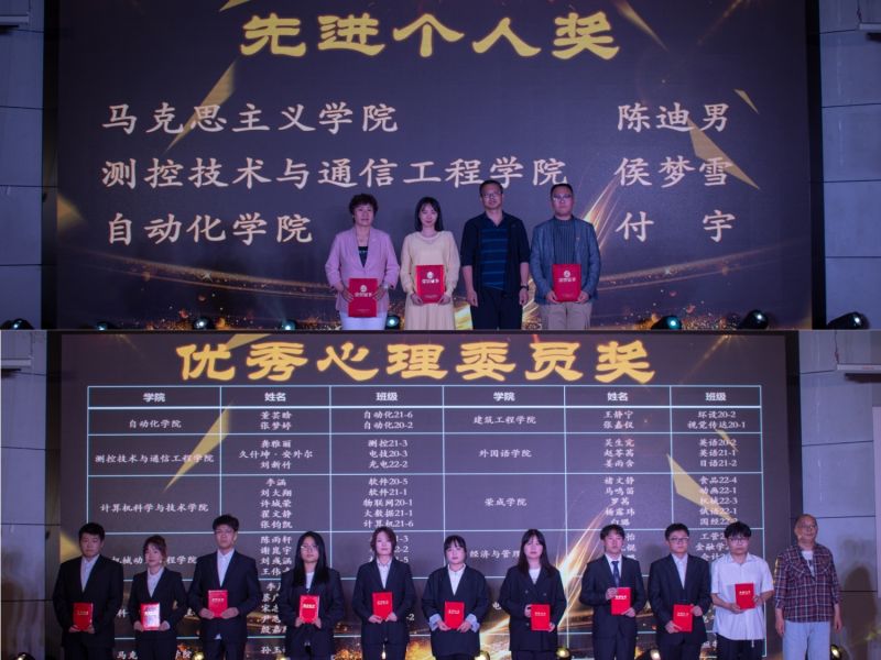 本届“5·25”心理健康教育宣传活动月形式多样,内容丰富,构建以校心理健康教育中心为主体,各学院和辅导员精品工作室上下联动的宣传活动平台,通过心理健康主题班会、主题讲座、校园心理情景剧大赛、心理健康教育工作实务培训、心理健康知识有奖答题、辅导员减压素质拓展、心理委员文化素质能力大赛等系列活动的开展,充分调动了同学们的积极性和主动性,更好的宣传、普及了心理健康知识,发挥了心理健康教育的主导作用,在学校营造了关注幸福感受、重视心理健康的良好氛围。本届活动共组织心理健康主题班会100余场、主题讲座20余场、心理健康教育实务培训10余场、主题比赛20余场。为总结工作经验,树立先进典型,学校以此为契机,表彰在心理健康教育工作中表现突出的集体和个人,其中,材料科学与化学工程学院、外国语学院获心理健康教育先进集体;电气学院党委副书记张颖荣获心理健康教育突出贡献奖;马克思主义学院党委副书记陈迪男、测控技术与通信工程学院辅导员侯梦雪、自动化学院辅导员付宇荣获心理健康教育工作先进个人;同时表彰优秀心理委员40人。
