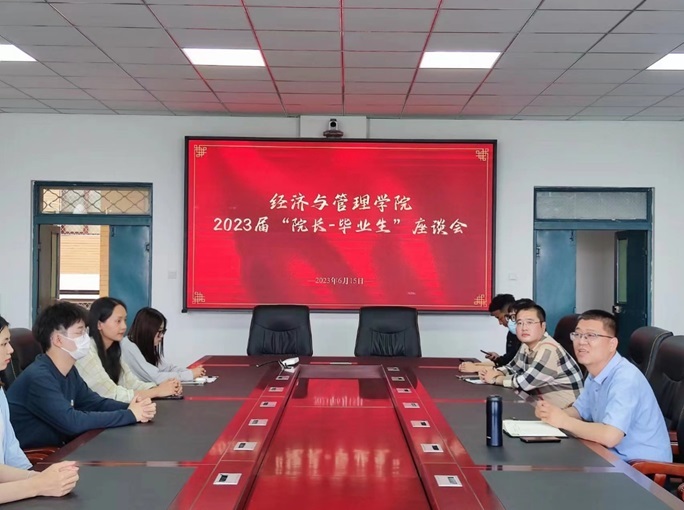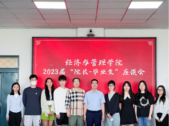 为深入落实学习贯彻习近平新时代中国特色社会主义思想主题教育要求,扎实做好毕业生服务工作,经济与管理学院于6月15日下午在南区一号楼743会议室召开2023届“院长•毕业生”座谈会。院长武建龙,毕业班辅导员徐大庆、温浩然、李知渊和毕业生代表参加座谈。