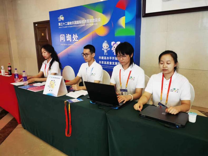 6月15日至19日,第三十二届哈尔滨国际经济贸易洽谈会(简称“哈洽会”)在国际会展体育中心举办,共有38个国家和地区、国内21个省区市的1400余家企业参展。为锻炼学生的沟通能力和实践能力,助力哈洽会,服务龙江经济发展,经校团委前期联络对接,通过团省委的选拔,我校外国语学院共派出4个语种的本、硕学生及留学生70余名志愿者参与哈洽会的筹备工作和展会期间的各项服务工作。