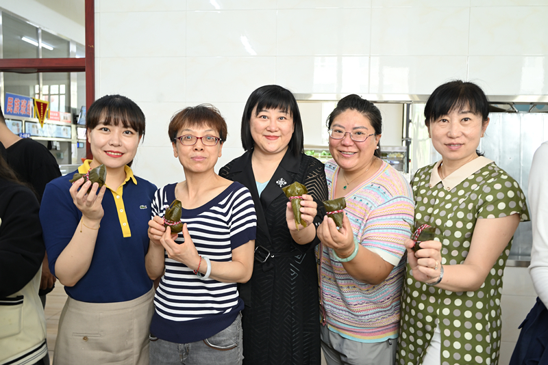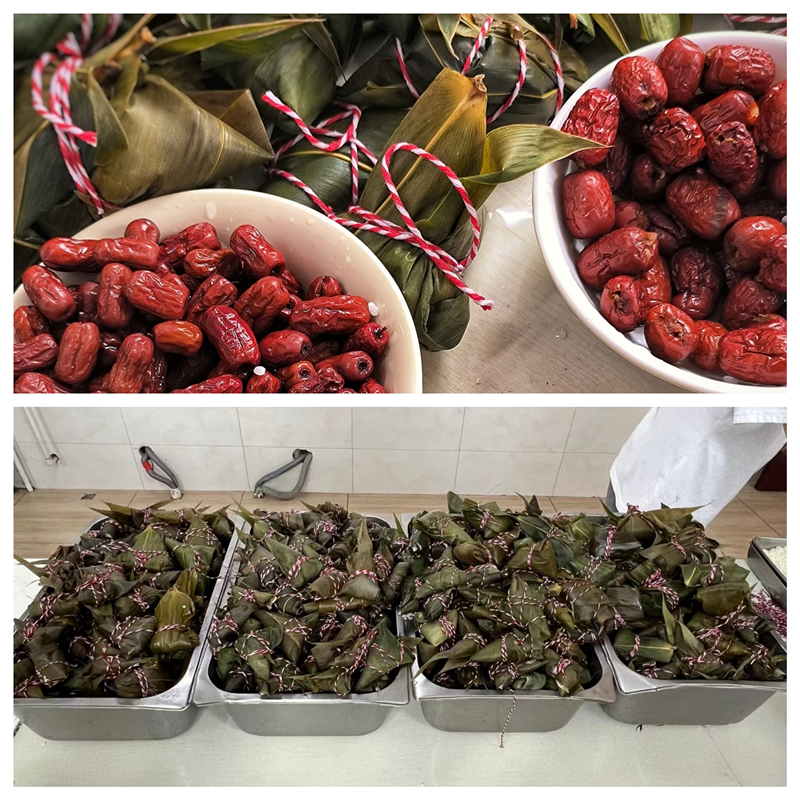活动中,同学们在老师的指导下折粽叶、装糯米、放红枣、裹扎绳,一粒粒饱满的糯米,一颗颗甜蜜的红枣,一片片清香的粽叶,在一双双巧手下,变成一个个清香的粽子,师生围在一起,一边切磋技艺,一边交流端午的由来、习俗、名人故事等中华传统文化知识,老师们为少数民族学生系上代表祝福的五彩绳,现场气氛温馨和谐,其乐融融,充满了欢声笑语。经过师生的一起努力,600余个粽子新鲜诞生。这些美味香甜的粽子将在端午节当天发放给所有少数民族学生。