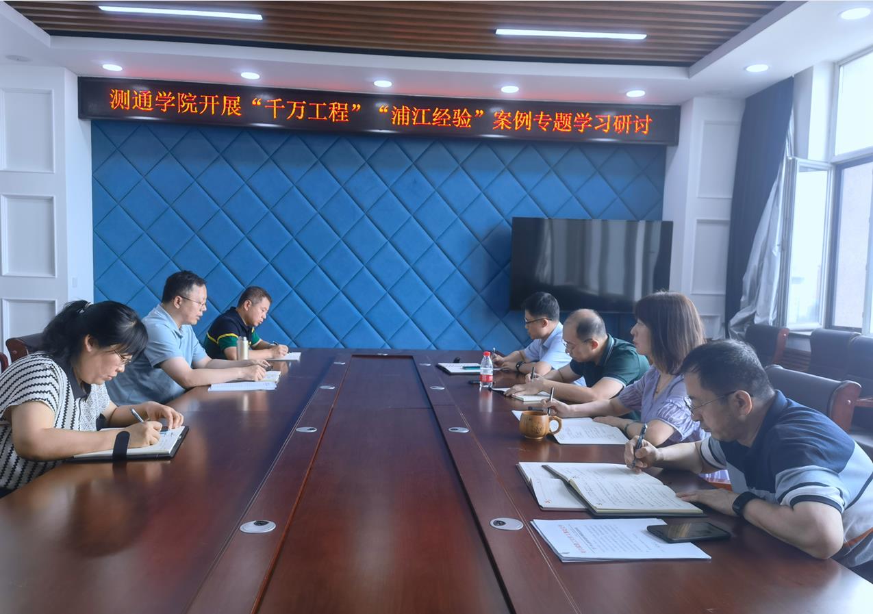 为深入推进学习贯彻习近平新时代中国特色社会主义思想主题教育,进一步贯彻落实习近平总书记的重要批示精神,按照学校党委统一部署和学院党委理论学习中心组学习计划,6月30日,测通学院党委理论学习中心组开展“千万工程”“浦江经验”案例专题学习研讨会,会议由学院党委书记黄春丽主持,院长吴海滨领学,学院党委理论学习中心组成员参会。
