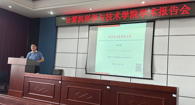 2023年7月5日,受计算机科学与技术学院邀请,在学校人事处、科技处等部门的支持下,国防科技大学刘新旺教授访问哈尔滨理工大学,并进行了关于多视图聚类的专题报告,会议由李骜教授主持,计算机科学与技术学院院长黄海出席报告会。