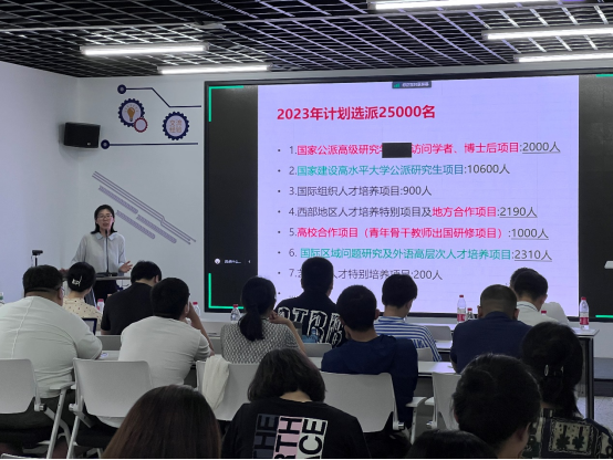 国际交流与合作处处长邵杨为新入职教师作以“国家公派出国留学介绍”为主题的培训报告。她从我校公派出国留学情况、国家公派出国留学政策、国家公派出国留学项目、国家公派面上项目申报注意事项四个方面为教师们做了介绍。报告中指出国家公派出国留学项目主要有:国家公派高级研究学者、访问学者、博士后项目;地方合作项目;高等学校青年骨干教师出国研修项目;博士生导师短期出国交流项目;互换奖学金计划项目;国外合作项目等。我校自2013年起正式获得国家留学基金委批准的“青年骨干教师出国研修项目”项目实施以来,学校投入专项经费积极鼓励教师申请青年骨干教师出国研修项目,赴国外知名大学深造学习,提高自身业务素质。