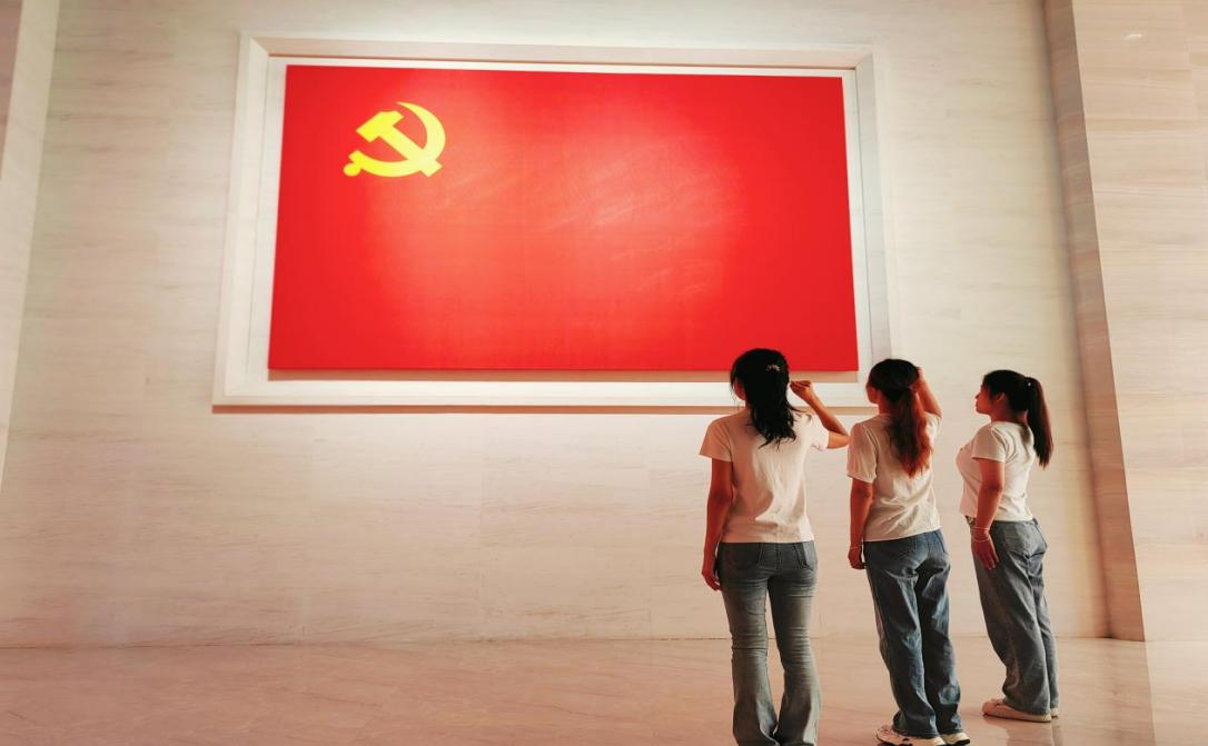 展厅内,中共一大会址的复原场景——上海市兴业路76号的石库门民居再现了中国共产党人的精神家园。团队成员杨阳详细的讲述了1921年,13名平均年龄28岁的中共一大代表,在一个18平方米的房间内酝酿的“开天辟地的大事变”。正是在这样一群建党新青年的努力下,以马克思主义为指导、勇担民族复兴历史大任、带领中国人民创造人间奇迹的中国共产党应运而生,中国革命的面貌由此改变。