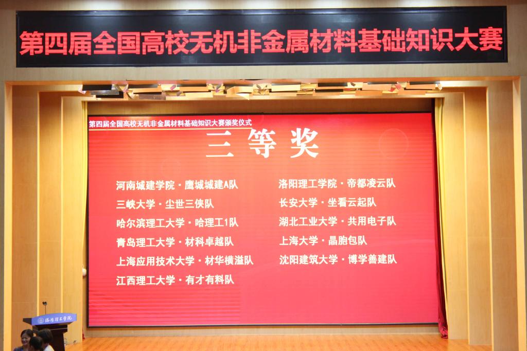 8月16-18日,第四届全国高校无机非金属材料基础知识大赛在洛阳理工学院举办,经过校内选拔、集训,我校派出由材化学院金立国老师带队,6名同学组成的2支代表队参加本次全国决赛。经过三天紧张激烈的比赛,张文博(无机20-1班)、许嘉芬(无机20-2班)、夏炜(无机21-1班)组成的哈理工2队获得大赛一等奖,王佳(无机20-2班)、蓝孝晖(无机20-2班)、张哲龙(无机21-3班)组成哈理工1队获得大赛三等奖。