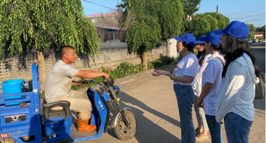 牡丹江实践团成员与小朱家村村民交谈