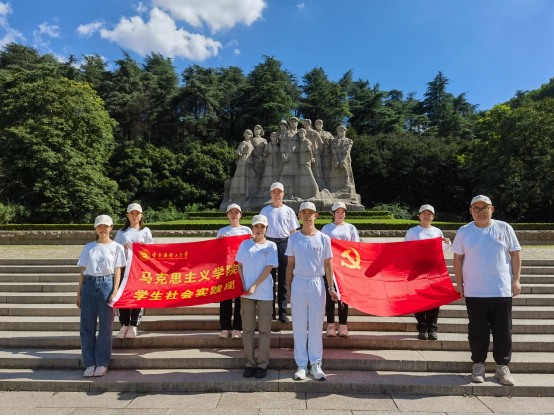 江苏实践团在雨花台烈士陵园群雕前留影