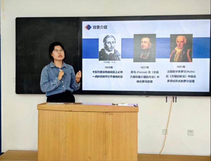 姜海洋老师讲授的内容是《高等数学》中的微分中值定理,通过微积分发展历史的背景介绍,还原数学概念的发展历程,启发学生思考,引导设问、环环相扣。利用所学知识,解决生活中的实际问题,同时让学生感受到中国速度。教学过程重点突出,逻辑清楚,内容承前启后,循序渐进。