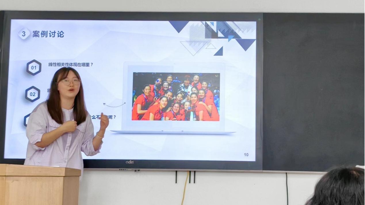 杜士晗讲解的是《概率论与数理统计》中的全概率公式,通过生活中的实例引入教学,利用生活中的随机现象入手启发学生思考。通过与时俱进的案例,秉承立德树人的理念,以学生为中心。在教学过程中将课前、课中、课后紧密结合,为学生搭建脚手架,帮助学生递进理解,辅助学生能力逐级提升。
