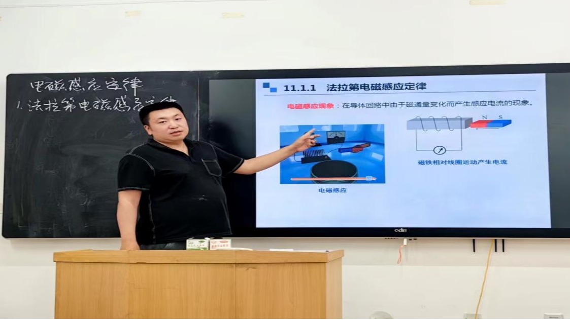徐帆老师讲授的是电磁感应定律,从现实出发,引入理论结合实例,可以把这些基本概念和定理生动的讲解,使学生掌握电和磁的关系。通过物理知识的学习与思维的训练,培养学生的分析问题和解决问题能力,培养学生探索精神和创新意识,努力培养学生独立学习的能力,同时,使学生能够掌握利用物理知识解决技术问题的能力,培养学生通过建立物理模型解决具体问题的能力。