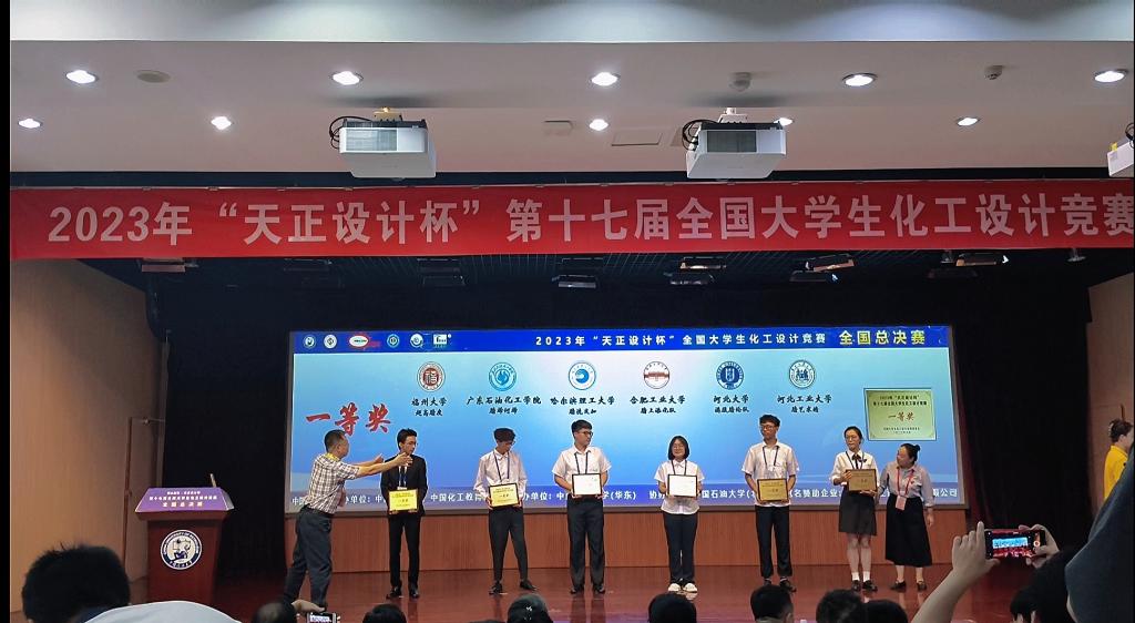 8月16日至22日,由中国化工学会、中国化工教育协会主办,中国石油大学(华东)承办,中国石油大学(北京)协办,浙江省天正设计工程有限公司冠名赞助的“天正设计杯”第十七届全国大学生化工设计竞赛全国总决赛顺利举办。我校“腈洗交加”团队从全国432所高校的3391支参赛队伍中脱颖而出,凭借出色的发挥和优异的表现,最终斩获全国一等奖!这也是近十年来,我校学生第七次获得全国一等奖!