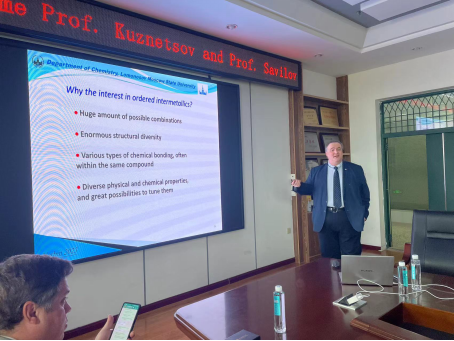 8月30日,Aleksei N. Kuznetsov院士为电气与电子工程学院师生作了一场精彩的学术报告,题目为“Design of new inorganic compounds and materials based on intermetallic fragments”。详细介绍了俄罗斯文化、莫斯科国立大学的学科专业特色及其在校师生分布情况、课题组近期的研究进展与成果,并与参会师生进行深入的研讨交流。