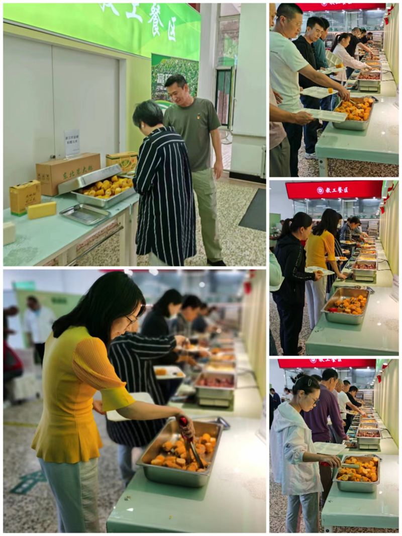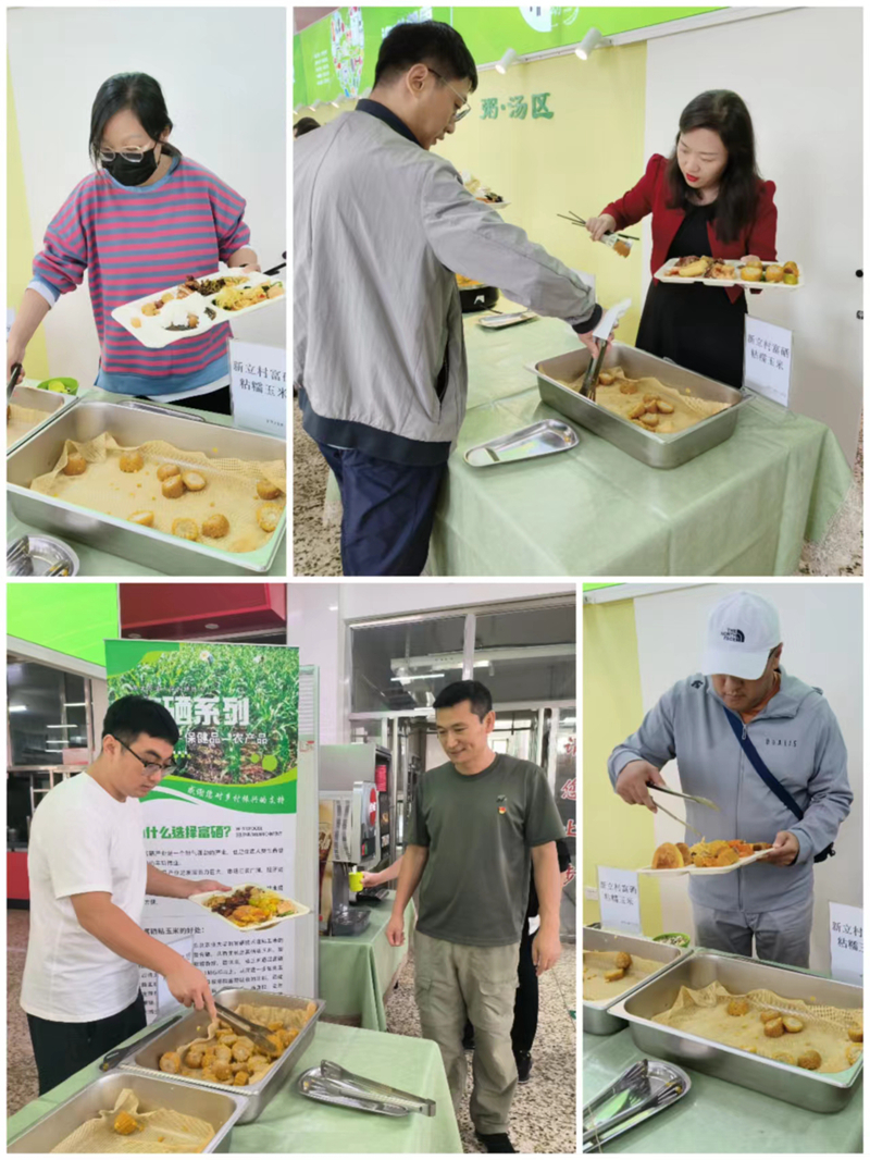 此次活动分别在西区、南区食堂举行,新立村的富硒粘玉米、富硒小米、富硒大米、富硒粘玉米大碴子、土鸡蛋、笨小鸡、笨大鹅等多种特色农副产品走上展台,为老师们提供绿色健康的美食。我校驻村工作队从农产品选种、播种、富硒、收割和成熟后的色泽等多方面向老师们进行介绍,并邀请老师们品尝特色农产品富硒粘玉米。老师们品尝后都称赞富硒粘玉米甘糯可口、味道香甜,还有部分老师现场购买农产品。