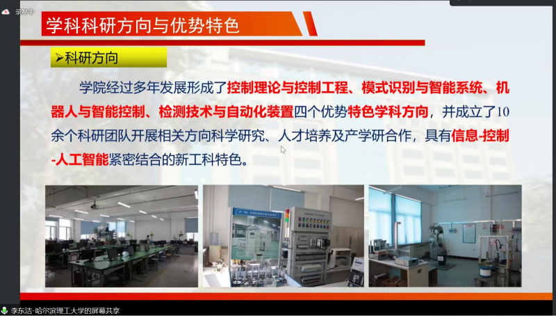 自动化学院李东洁副院长以学院核心科研方向及成果产出为主线,全面介绍了学院在推动科学研究及科研成果落地方面所采取的主要举措与效果。李东洁副院长表示,学院经过多年发展形成了控制理论与控制工程、模式识别与人工智能系统、机器人与智能控制、检测技术与自动化装置四个优势特色学科方向。多年来,在优势学科方向的引领下,形成了完善的产学研一体化发展机制,部分核心研究方向的科研成果,已经在国防航天、新材料加工等领域实现了扎实的科研成果落地应用,有效推动了相关产业的升级改造,并在部分自动化尖端领域形成了具有突出代表性的应用范例。