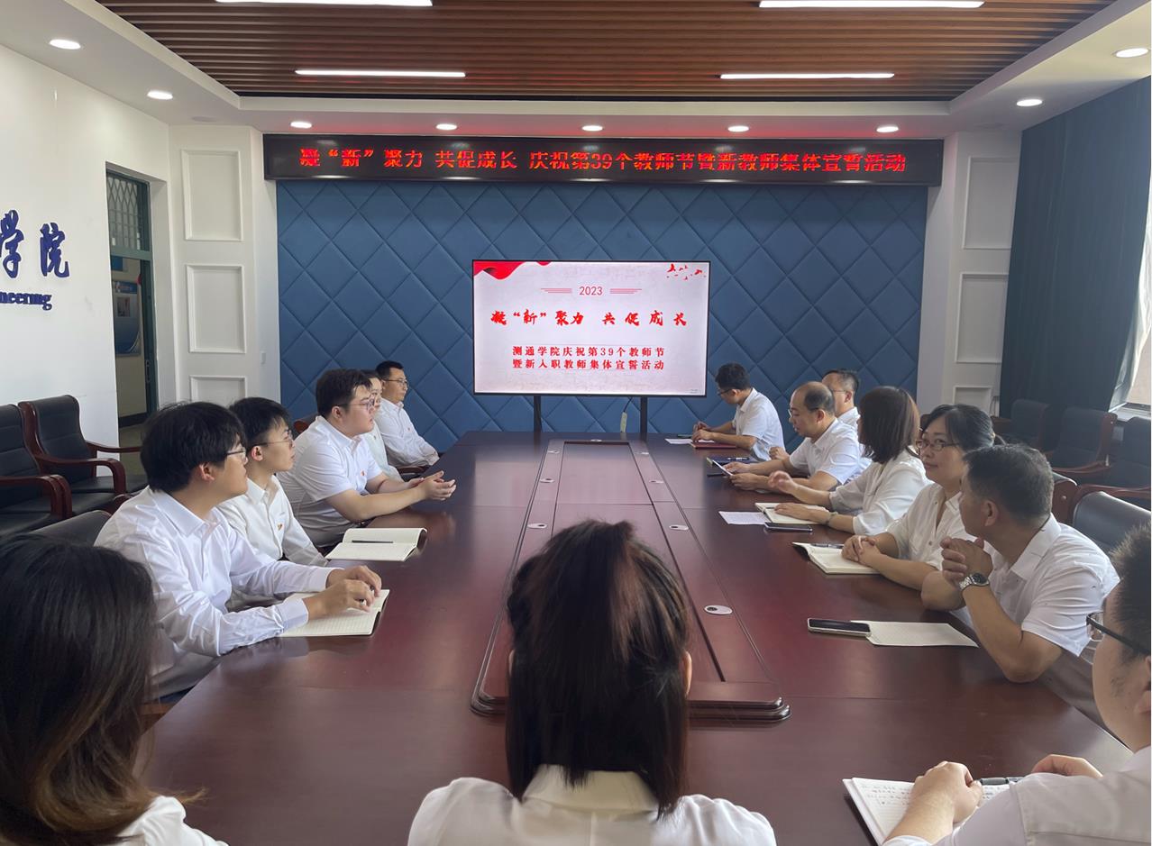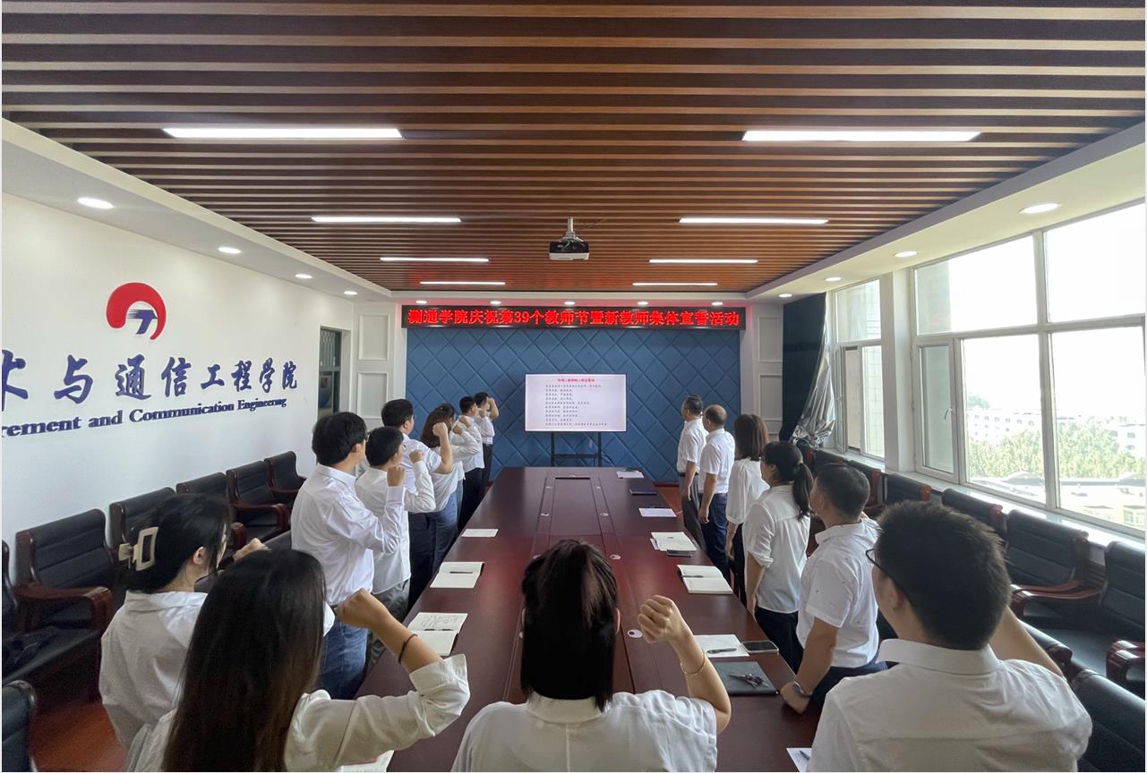 在第39个教师节来临之际,9月7日上午,测控技术与通信工程学院在教学主楼E1025室开展“凝‘新’聚力、共促成长”庆祝第39个教师节暨新入职教师宣誓活动。学院党委书记黄春丽、院长吴海滨出席仪式并讲话,学院党委副书记张宏磊主持会议,副院长盖建新、孙晓明、孙慧以及近年新入职教师参加活动。