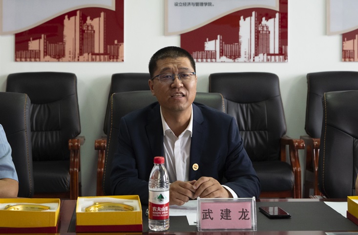 武建龙院长首先代表学院全体师生,向罗晓光、梁静溪、闫林凤、郑云花、姜艳萍、张广福、滕喜春七位荣退教师献上最崇高的敬意与最美好的祝福,由衷感谢他们在学院发展、学科建设、人才培养等方面长期以来做出的努力和贡献。同时,也对赵雨薇、刘红艳、刘凯然、高铭四位年轻教师的加入表示热烈欢迎。他指出,近年来,学院全体教职工攻坚克难,一方面在一流学科、一流专业、一流课程及学位点建设方面取得了突出成绩;另一方面在国家项目立项数量上实现重大突破,并成功举办了多个学术年会,扩大了学院和学科影响力。这些成果的取得离不开全院教职员工的共同努力,尤其是荣退教师们多年来的无私奉献。他强调,“注重学者、崇尚学术”是我们学院发展之根本,倡导以荣退教师为榜样,坚持“立德树人、铸魂育人”,为推动学院高质量发展贡献力量。